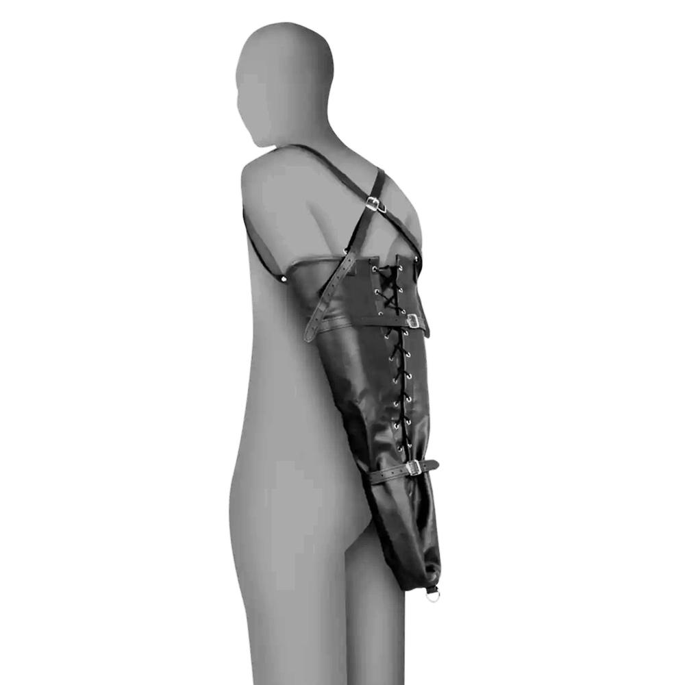 Vstúpte do sveta intenzívneho BDSM s OUCH! Xtreme návlekom. Tento unikátny návlek je z PU kože a odoberá všetku voľnosť pohybu. S čiernymi popruhmi a celkovým prevedením pevne znehybní paže za chrbtom. Popruhy cez ramená zaisťujú návlek proti skĺznutiu a majú nastaviteľné pracky. Návlek sa zatvára pomocou šnúrok a postupným sťahovaním. Vďaka nemu je veľmi variabilný pre rôzne silné paže, postupným uťahovaním nastavíte ideálne spútanie pre kohokoľvek. D-krúžok na konci pridáva ďalšiu úroveň zauzlenia a umožňuje vám pripevniť laná, reťaze alebo putá na členky.